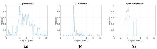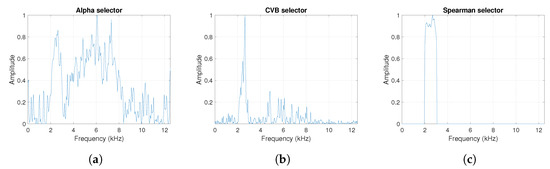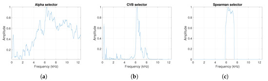 Figure 19), the frequency band in the range of 3–4 kHz has high energy. The energy is also high around a narrow band 6 kHz. It is a consequence of the fact that Spearman selector has a narrow but high amplitude at this place.
