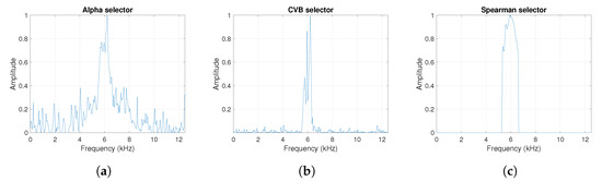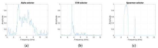 Figure 4. It is easy to notice, that not all considered methods work properly. It is obvious that all selectors correctly recognize the informative frequency band, but the Alpha selector (see