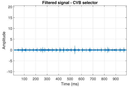 has been filtered with the CVB selector. The periodic impulses are noticeable, but their amplitude is very low, it is about 1 (see