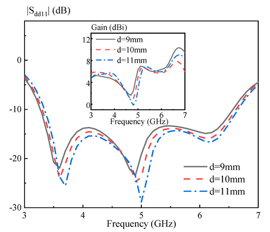 - Slightly adjusting d to optimize the antenna gain of the high frequency band.