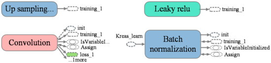 The following Figure 2 shows a part graph of YOLO v3 exported from TensorBoard of TensorFlow visualization API, which was actually a neural network connection diagram for YOLO’s second up sampling. The TensorBoard can show the output and input tensor variables at each node, in addition, it can show the dependency between the tensor operations through some edges. The conv2d here is abbreviated for the convolution layer or block in Figure 1. Similarly, Leaky relu is denoted as ReLu layers in Figure 1 and batch normalization is denoted as BN layer. We can visualize all concatenation operation of each stage of YOLO v3 through TensorBoard, such as the attributes behind the convolution layer indicate that the input and output tensors correspond to this convolutional layer. The loss represents the value of the current convolutional layer after passing through the optimizer.