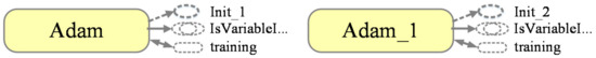 When using the gradient descent method to optimize YOLO v3 loss value, even though the loss function have to be optimized near the minimum value, there still exists a large gradient. In this way, using a global learning rate will cause some serious problems, such as slow gradient convergence or unstable loss value. In order to solve this problem, this article uses the Adam algorithm which is a learning rate adaptive algorithm improved by the RMSProp algorithm proposed by Kingma in 2014 [39]. First, we set a default learning rate (0.001 in TensorFlow) and two exponential decay rates for moment estimation (default is 0.9 and 0.990 in TensorFlow); then initialize the moment variable and its time step count; finally, we continuously correct the deviation through biased moment estimation to update the weight and learning rate. Figure 7 below shows two structural diagrams of Adam optimizers in TensorBoard.