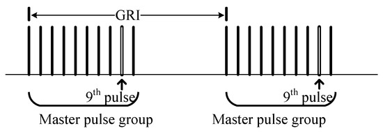 Figure 4 shows the ninth pulse modulation given in [27]. All modulation messages consist of three components: 4-bit for type, 41-bit for payload, and 75-bit for parity component. The message sending rate is 5 bits/GRI. The time length of the messages is 24 GRI (maximum of approximately 2.4 s).