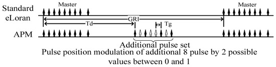 In this article, an additional pulse on–off modulation method is proposed. Without changing the existing eLORAN system, eight pulses are added after the existing pulse set, and the presence or absence of pulses represents 1 and 0 in binary, similar to On–Off Key modulation. APM pattern is given in Figure 5.