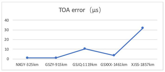 By comparing the time difference between the 1PPS output by the BPL receiver and the 1PPS output by the GNSS receiver, the TOA error between the actual propagation delay value and the theoretical delay value is analyzed.