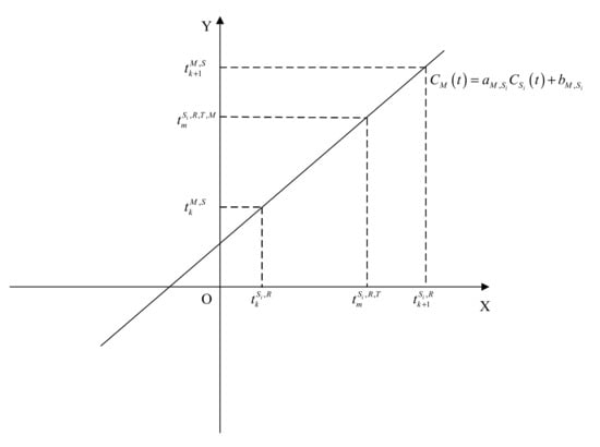 In general, the base station uses a hardware oscillator to generate the time label. Let the C(t) denote the base station clock time. For a perfect clock, . However, the hardware oscillators all have frequency deviations due to their physical conditions and other factors. It has been found [] that although the clock frequency is constantly changing, the following formula can be used to approximate the local clock of the base station :