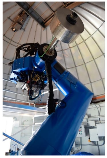 - Cenarro, A.J.; Moles, M.; Marín-Franch, A.; Cristóbal-Hornillos, D.; Díaz, A.Y.; Ederoclite, A.; Varela, J.A.; Vázquez-Ramio, H.; Valdivielso, L.; Benitez, N.; et al. The Observatorio Astrofísico de Javalambre: Current status, developments, operations and strategies. In Proceedings of the SPIE Astronomical Telescopes + Instrumentation, Montreal, QC, Canada, 22–27 June 2014. [Google Scholar]