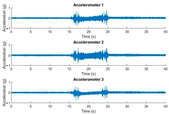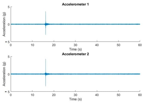 Piezoelectric sensors are widely used in vibration-based research. These sensors have good sensitivity and measurement ranges that reach very low frequencies (close to 0 Hz). On the other hand, they are very sensitive to electromagnetic fields, which can lead to the coupling of unwanted signals such as the electrical network. The elimination of these undesirable frequency couplings is solvable by filtering software techniques [20,21,22].