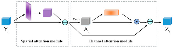 The output in the spatial attention module is used as the input in the channel attention module. Firstly, passes through a stack of convolutional layers S to capture features ,