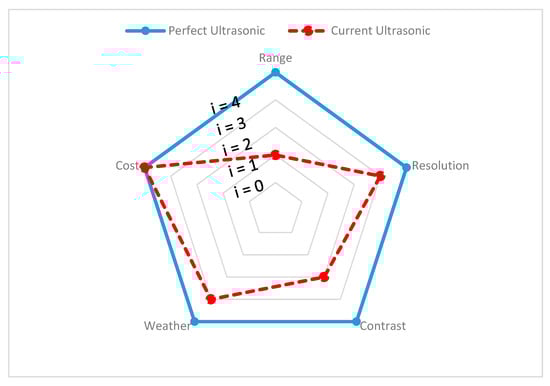 Ultrasonic sensor spider chart, showing performance gap.