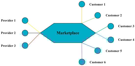 The optimal resource allocation is also shown in Figure 10, where represents the amount of bandwidth resource provided by provider to customer , is the amount of bandwidth resource received by each customer . Meanwhile, in the “Resource for customer 1” of Figure 10, respectively represents the amount of resource provided by the three providers to customer and represents the total amount of resource obtained by customer .
