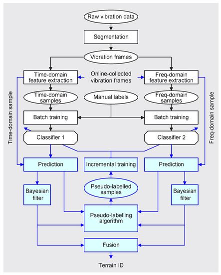 - Shi, W.; Li, Z.; Lv, W.; Wu, Y.; Chang, J.; Li, X. Laplacian Support Vector Machine for Vibration-Based Robotic Terrain Classification. Electronics 2020, 9, 513. [Google Scholar] [CrossRef]