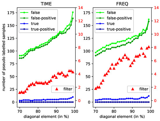 | Input: The unlabeled samples and , the a priori terrain predictions and , the a posteriori terrain predictions and , where . Output: Pseudo-labeled sample sets and , for time and frequency domain, respectively.