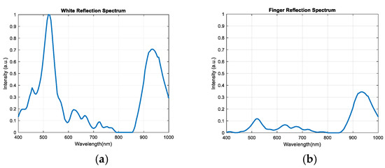 Reflection spectrum: (a) on a standard reflection white plate; (b)on a finger.