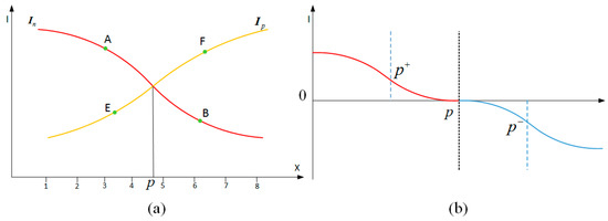For each pixel in camera image, the optimal parameters , , and in Equation (8) can be acquired by the optimization method. Thus, after acquiring the zero-crossing point with the intensity vectors Ip and In, we adjust the profile of the stripe from the normal and inverse image based on the above-estimated parameters.