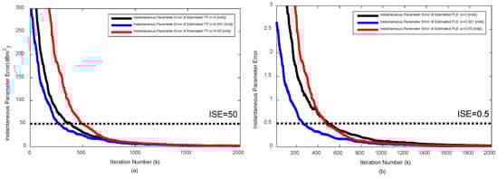 Figure 3 plots the and over the iteration under the severe noise, when the target moves with constant velocities (, , and ). Even for the moving target, the reliable TP and PLE estimations that make the hybrid target localization algorithm outperform AOA-only algorithm is possible within 500 iterations.