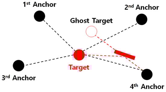 where is target position at the k-th iteration. The system matrix in the state-space model, H, is replaced with the time-varying model, , with the updated distance between target and anchors, in the Equation (26).