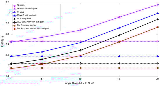 RMSE vs. angle bias due to multipath propagation at the 4th anchor.