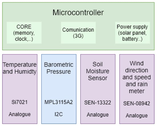 An example of such official weather stations is the Automated Weather Data Acquisition System (AMeDAS) developed by the Japan Meteorological Agency []. To date, AMeDAS has installed stations at 1300 locations in Japan. These stations have sensors that monitor temperature, humidity, solar radiation, wind speed/direction, precipitation, atmospheric pressure and other phenomena. In Spain, the “Agencia Estatal de Meteorología” (AEMET) is responsible for maintaining almost 800 weather stations across the country []. The AEMET’s monitoring stations observe meteorological phenomena as well as solar radiation, ozone and several pollutants. In both monitoring systems, data accuracy is certified by the organisation responsible for the deployment and maintenance of the network. The data obtained are used for several purposes, including weather forecasting, disaster forecasting or crop modelling.