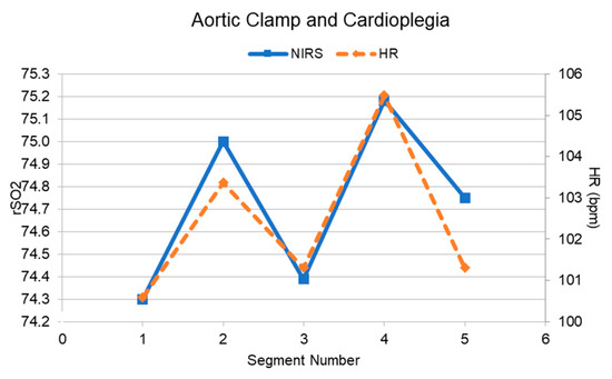 In addition to correlational analyses, we calculated minimum and maximum differences between data points within each sub-phase to gauge how similar HR and rSO2 values were over the course of the sub-phase (Table 2) [22]. Figure 4 provides an exemplified illustration of the relationship between HR and NIRS during the Aortic Clamp and Cardioplegia sub-phase during bypass. This analysis was followed by a two-way Kolmogorov–Smirnov test to statistically evaluate whether distributions from the two data sources differed. Based on these latter analyses, there were no statistically significant differences between the distributions of HR and NIRS data observed across sub-phases (p > 0.05 in all sub-phases).