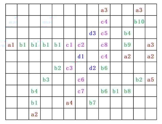 In order to further reduce the time spent on matching and improve the matching accuracy, we introduced the location information of the neighborhood, and proposed a feature point classification method based on the connection location of the neighborhood, as shown in Figure 4. It should be particularly noted that the proposed method divides the feature points into 250 types, and it is neither realistic nor necessary to list them all in the paper. Therefore, Figure 4 only shows a part of them for visual analysis.