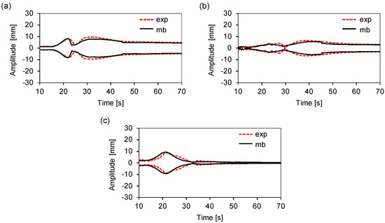 Multibody and experimental displacement envelopes: (a) counter load. (b) counter load. (c) middle load.