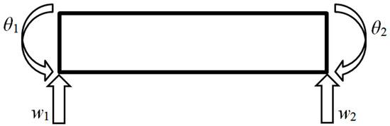 The two-node Euler-Bernoulli finite element marked displacements, and , and rotations, and .