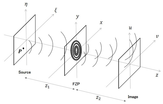 Then according to Huygens–Fresnel principle, at a distance behind the FZP, the wave field distribution at the image plane is given by