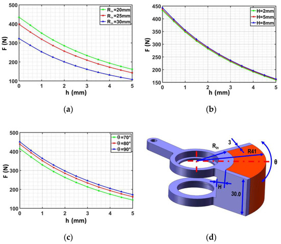 According to the principle of a single variable, the relationship between wheel adsorption force and variable can be obtained by changing the air gap , inner radius , and angle of magnet . The simulation results are shown in Figure 3.