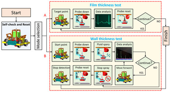 Robot detection workflow. (A) in the figure represents film thickness detection. (B) in the figure represents wall thickness detection.