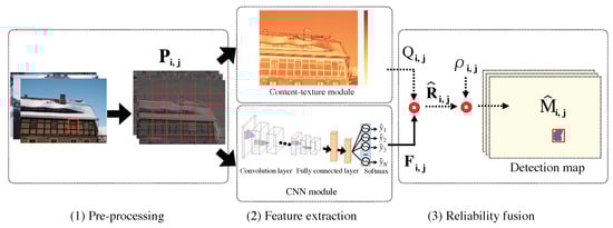 The remainder of this paper is organized as follows. Section 2 reviews the related literature. In Section 3, we describe our proposed framework, consisting of a pre-processing stage (high-pass filter), a feature extraction stage (CNN module equipped with content-texture module), and a reliability fusion stage (binary map RFM). Section 4 presents the numerical results over the benchmark dataset, and a comparative performance evaluation. Finally, Section 5 concludes this paper.