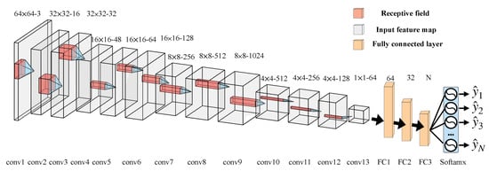 Architecture of the convolution neural network (CNN) module, with 13 conventional layers, three fully-connected layers and a softmax layer.