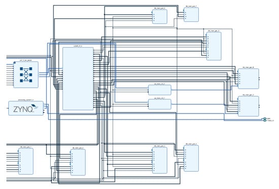 Figure 9 shows the implementation in VIVADO. The FFT is executed via that process, and finally Memory B stores Real data and Memory C stores Image data, which brings the data from the ARM core and sends it to the PC via UART communication. In this process, verification was performed using the Zynq-7020 board shown in