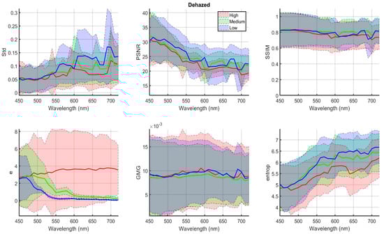 3.1.1. Influence of the Spectral Band on Hazy and Dehazed Images