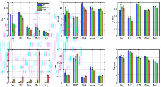- Hautiere, N.; Tarel, J.-P.; Aubert, D.; Dumont, E. Blind contrast enhancement assessment by gradient ratioing at visible edges. Image Anal. Stereol. 2008, 27, 87–95. [Google Scholar]