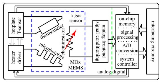 - Hagleitner, C.; Hierlemann, A.; Lange, D.; Kummer, A.; Kerness, N.; Brand, O.; Baltes, H. Smart single-chip gas sensor microsystem. Nature 2001, 414, 293–296. [Google Scholar] [CrossRef]