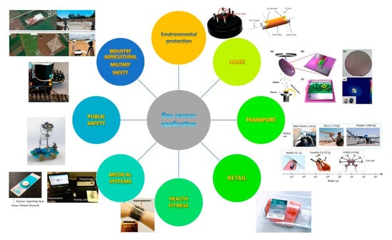 Gas sensors are widely used to detect low concentrations of flammable, explosive, or toxic gases and monitor environmental pollution [3]. Monitoring of gases, humidity, and moisture in the environment surrounding us, medicine, industrial processing, and agriculture is also very important [4]. One illustrative example of the application of gas sensors is sensing hydrogen (H2). It is the lightest of all elements and, at standard pressures and temperatures, colorless, odorless, and tasteless. It cannot be detected by human senses. Moreover, it is a highly combustible and flammable gas. With air, hydrogen forms an explosive mixture, which may be ignited in a spontaneous reaction. Hydrogen is applied as fuel and propellant in hydrogen powered vehicles and aerospace operations. Indirectly, hydrogen observation is important in a plethora of spheres ranging from everyday ones like detection of environmental pollution or indication of certain diseases up to an early sign of fire or reactor safety inside nuclear power plants. Hydrogen presence detection and concentration quantification is needed in semiconductor manufacturing and revealing of impending transformer failure in electric power plants. Very different, but equally illustrative examples are the so-called volatile organic compounds (VOCs), which are high vapor pressure organic chemicals. VOCs are both numerous and ubiquitous, and while some of them can cause harm to human health, others present a danger to the environment. Typically, harmful VOCs are not acutely toxic, but if generated inside houses may cause the “sick building” syndrome. Some of them can have compounding long-term health effects and are even carcinogenic. On the other hand, VOCs can also be found inside the human body. Particularly, a breath contains thousands of VOCs, which can originate from either within the body (endogenous VOCs) or from external sources such as diet, prescription drugs, or environmental exposure (exogenous VOCs).