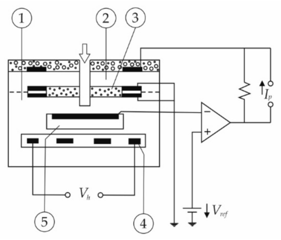 To enable wideband operation, the UEGO sensor considered in this study has three measurement chambers that are shown in Figure 1 and referred to as (1) a sensor cell, (2) a pump cell, and (5) a reference air channel.
