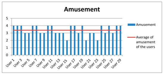 Results obtained in the questionnaire performed by the participants about the amusement obtained with the social robot.