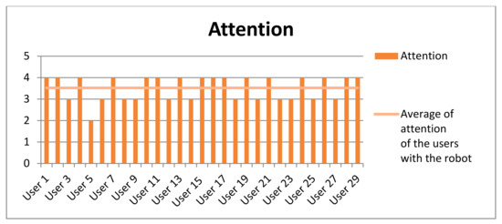 Results obtained in the questionnaire performed by the participants about the attention obtained with the social robot.
