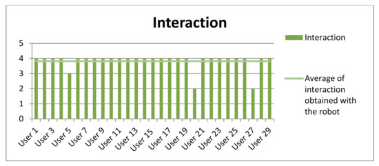 Results obtained in the questionnaire performed by the participants about the interaction obtained with the social robot.