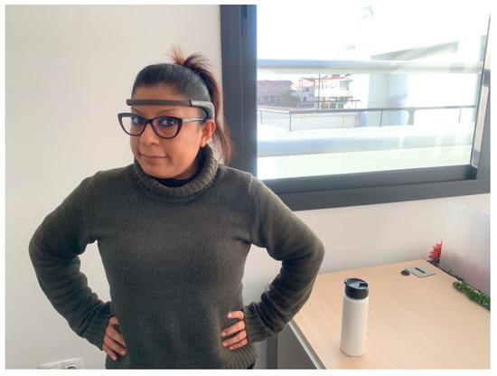 We recorded forty EEG sessions per participant with a low-intrusive headband (see Figure 2), performing two different tasks: motor imagery for left and right hands (20 sessions per hand). Each session lasted 20 s and we labelled them (0–1) depending on the tasks (left/right hand). These sessions took place in a silent and distraction-free environment, as the lack of concentration could influence the results.