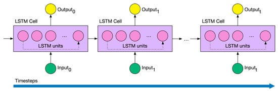 In particular, one of the most used layers in an RNN is the long short-term memory (LSTM). As LSTM layers are recurrent, they retain memory of the previous time step. This feature makes these layers suitable for time series where the lags between events are uncertain. LSTM hidden layers (neurons) are called units. These units are inside a cell. Like RNN, the LSTM cell has a state and therefore can remember information of the previous timestep (see Figure 3). The common input of an LSTM is a triplet consisting of samples, timesteps, and features.