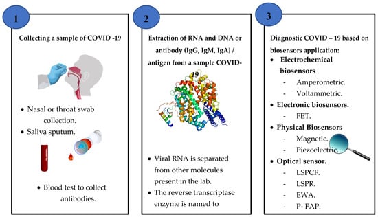 - Viral recognition of RNA/DNA using RT-PCR and PCR principles, whether attributed with fluorescence in regular nuclear acid platforms or using advanced methods including LSPR, SPR, QCM and other sensor techniques [45].