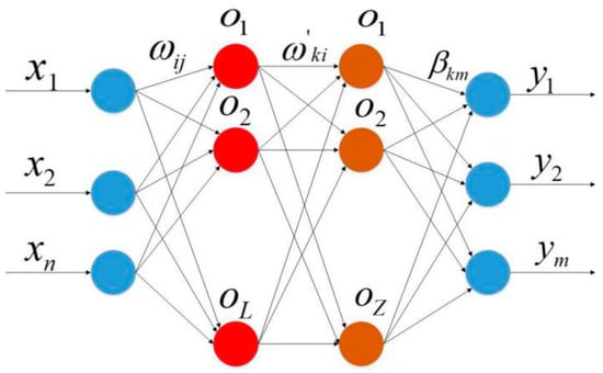 where L represents the number of neurons in the hidden layer of ELM; N represents the total number of samples entering the model training; βi represents the weight vector between the hidden layer and output layer; ωi is a random value, which represents the connection weight between the hidden layer neuron and the input feature; represents the activation function; bi represents the offset vector; xj represents the input vector.