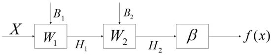 The weights ω2 of the connection between the second hidden layer and the first layer and the threshold value b2 of the second layer neurons are initialized randomly. Then, H1 is used as the input matrix of the second hidden layer to calculate the output matrix H2 of the second hidden layer: