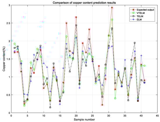 First of all, from the test results, compared with ELM and TELM, VTELM has the smallest root mean square error, which shows that the output value of VTELM is closer to the true value, so it can detect the Cu content in copper ore more accurately;