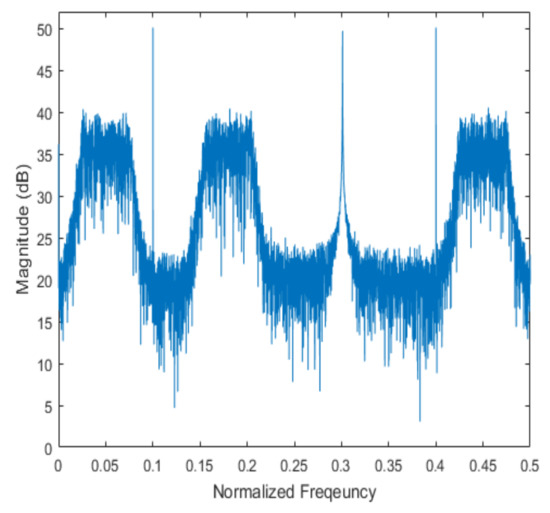 Spectrum of the received signal for the third scenario.