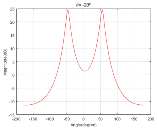 Spatial spectrum of Beamspace MUSIC in the proposed algorithm for the second scenario (elevation angle = −20°).