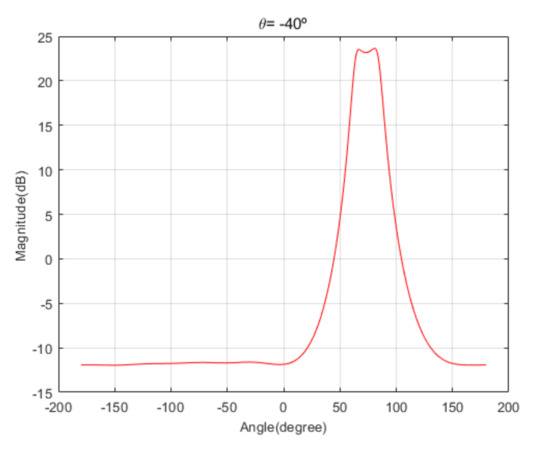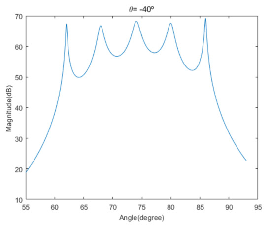 Spatial spectrum of Beamspace MUSIC in the proposed algorithm, for the third scenario (elevation angle = −40°).